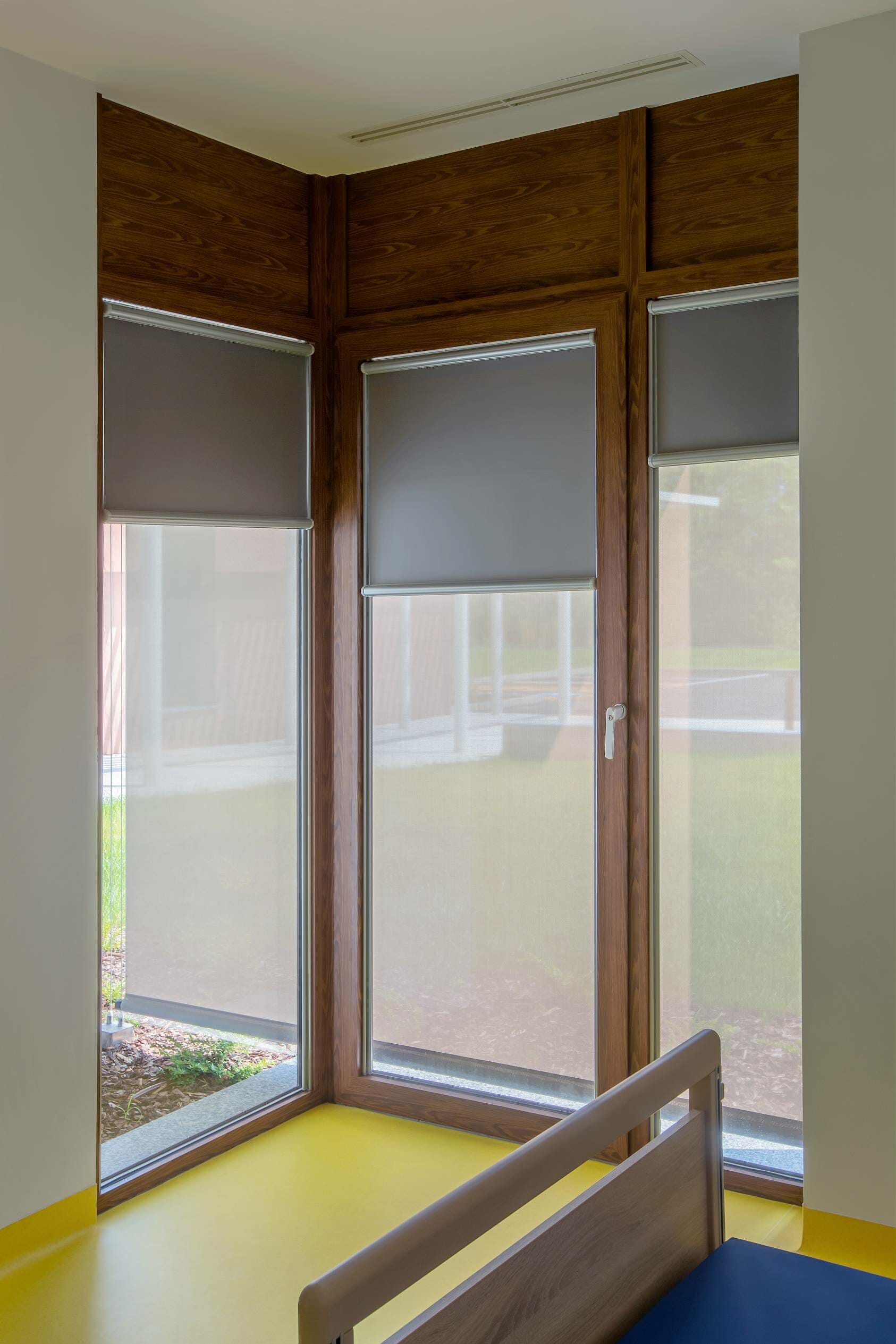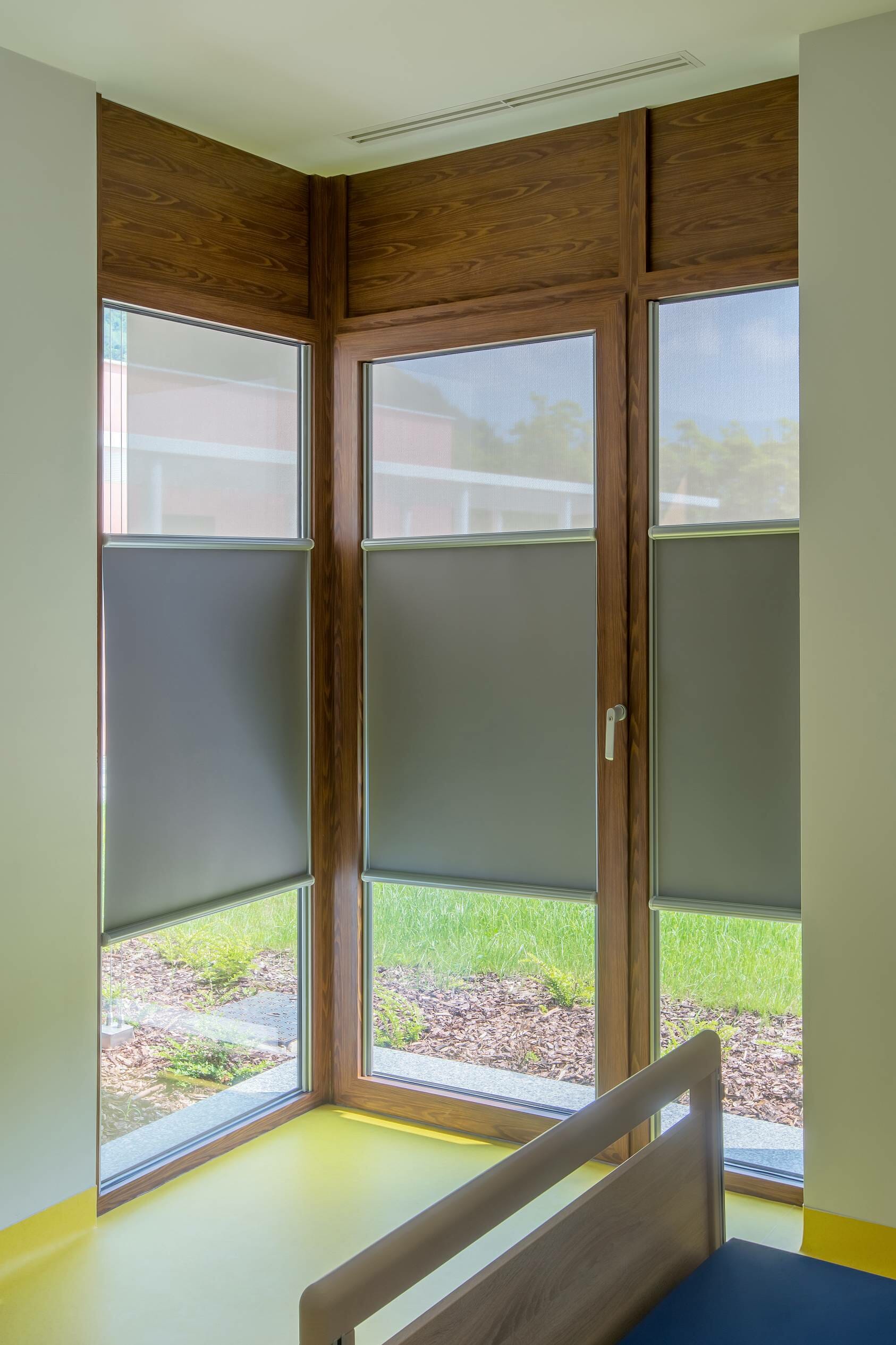 Plus précisément, ce sont 71 STORES ROULANTS DU MODÈLE NANO avec structure grise qui ont été installés dans les chambres des enfants. Ils sont équipés d’un double coffre qui permet de régler le passage de la lumière aussi bien par le bas que par le haut pour une protection encore plus efficace et confortable.