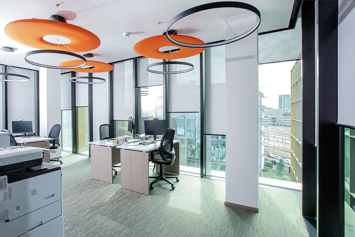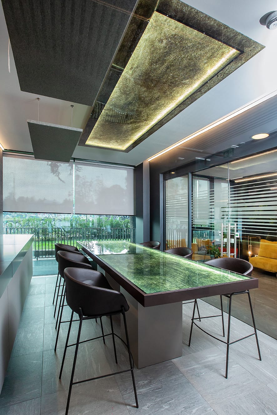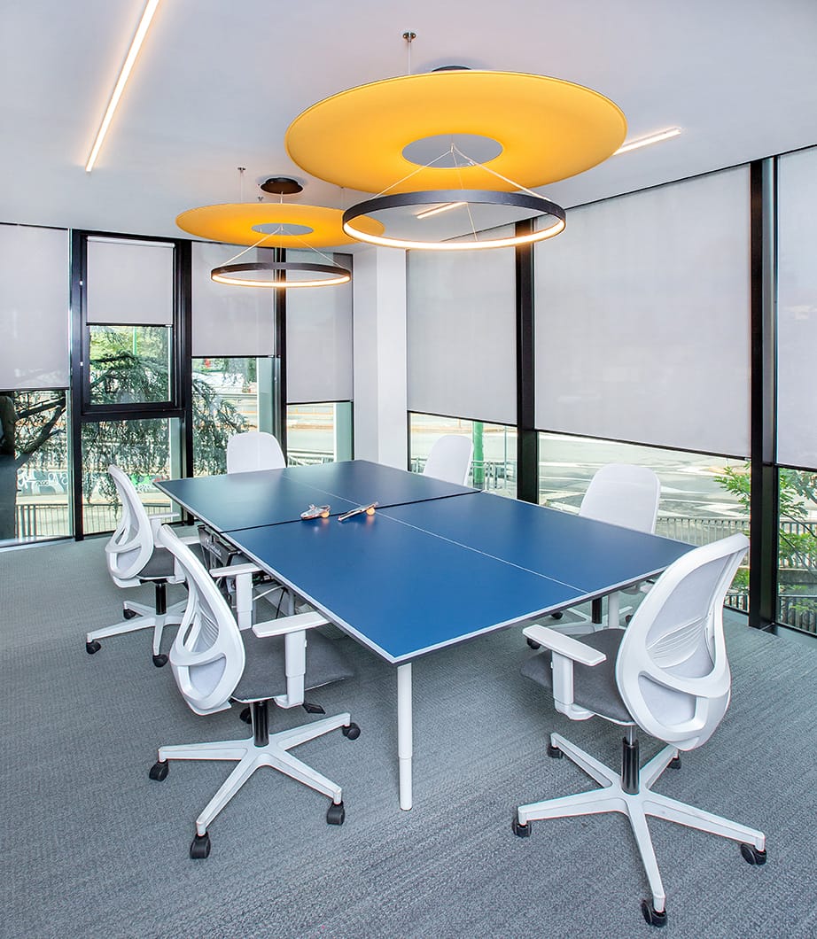 RESSTENDE, en collaboration avec le cabinet d’architecture ESSE E BI STUDIO, a contribué à la réalisation du projet d’aménagement des nouveaux espaces e travail, en créant et en concevant plus de 1 200 PROTECTIONS SOLAIRES INTÉRIEURES, MODÈLE F 101 avec fixation au plafond.