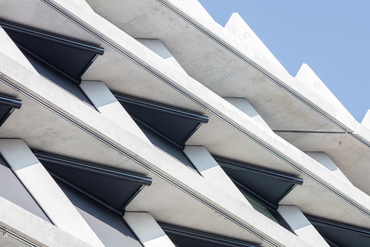 Le plan de construction des stores verticaux et inclinés de la Fondation Feltrinelli prévoyait une étude approfondie des guides de fixation sur la menuiserie et des détails sur la préparation du système électrique pour l’utilisation des protections. 384 protections à rouleaux ont été installées sur la façade SUD du complexe. Parmi celles-ci, 192 sont des systèmes ZIP d’une largeur de 2,14 m et d’une hauteur de 3,49 m et 128 sont des systèmes ZIP inclinés qui ont nécessité un développement technique particulier et le recours au système Traction kit. L’accrochage et la pose des stores ont été conçus pour optimiser la maintenance et les temps de pose, qui sont très difficiles à haute altitude.