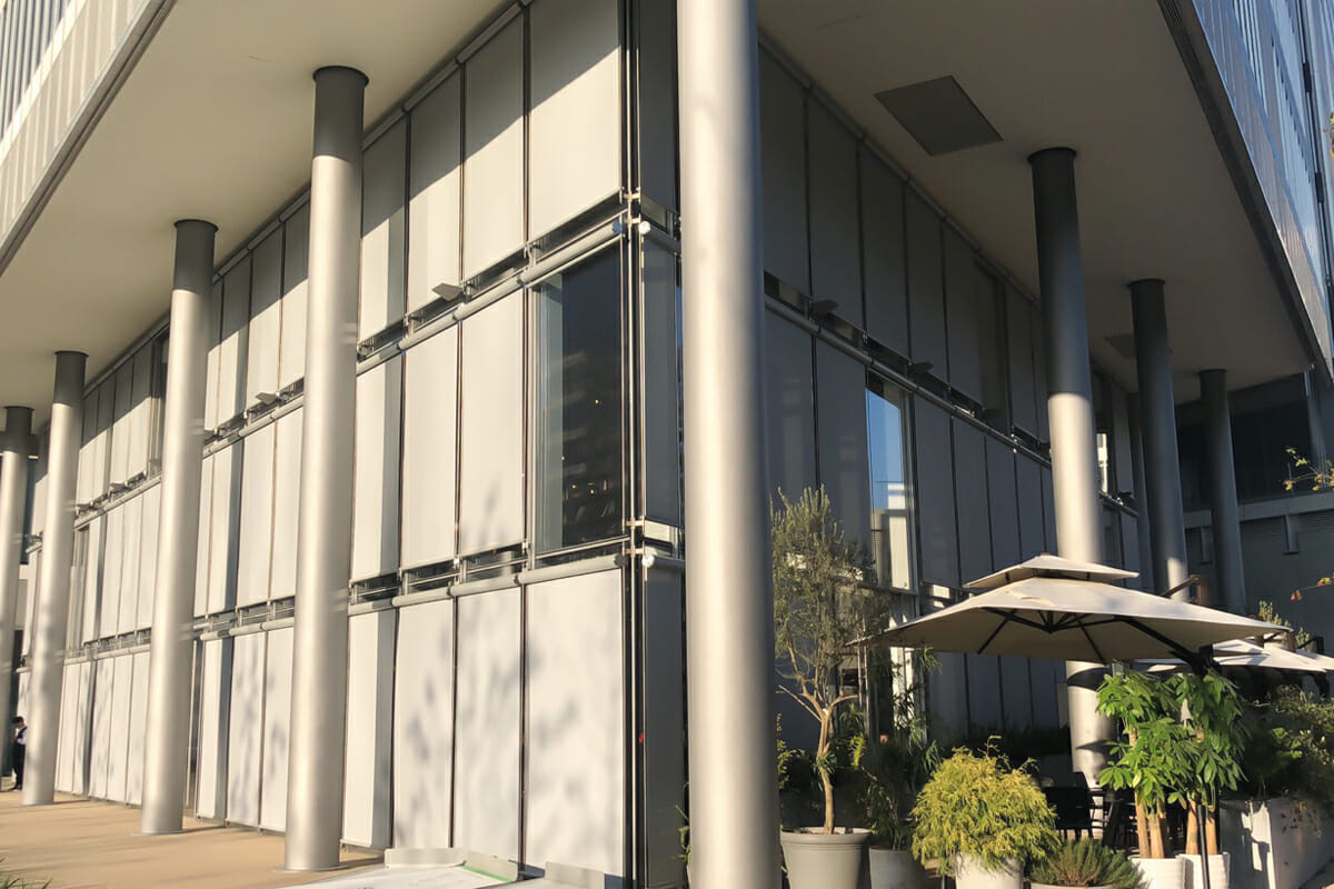 Le JNBY Headquarters est le premier projet chinois du cabinet RPBW, à l’ADN italien. Il s’agit d’un « superbloc » qui constitue le tissu urbain de la ville de Hangzhou. La succursale Restende Shanghai Noosa a installé PLUS DE 1 300 SYSTÈMES DE PROTECTION EXTERNES ET INTERNES. Sur les façades des premiers étages, nous trouvons les SYSTÈMES PROIEZIONE 110 avec le tissu vert reconnaissable, tandis qu’aux étages supérieurs, les SYSTÈMES ÉLÉGANTS DALLAS 110 se combinent à un tissu filtrant gris/blanc, qui se fond dans les couleurs structurelles du complexe. UN GRAND EXEMPLE DE PROJET DE COORDINATION À DISTANCE, D’EFFICACITÉ, DE TECHNICITÉ ET DE CONFIANCE.