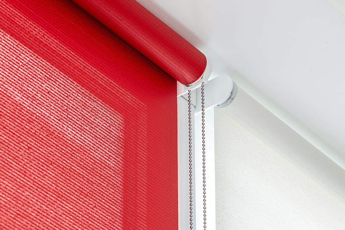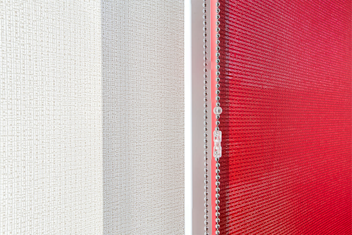 DANS CE PROJET, LES PROTECTIONS INTERNES DE RESSTENDE SE COMPOSENT DE 13 STORES ROULANTS DU MODÈLE F112 actionnés par chaîne métallique. Elles sont fixées au mur à l’aide d’équerres de fixation de 52 x 80 mm avec cache-équerres en PVC blanc. Le fond F21 est également de couleur blanche, en aluminium extrudé avec des capuchons en PVC. Le tissu sélectionné est le tissu filtrant SOLTIS dans les variantes PERFORM 92 de couleur blanc, code 38044 et LOUNGE 96, couleur rouge, code 39855, des nuances qui s’intègrent harmonieusement au mobilier du lieu, qui donnent de la fraîcheur et une lumière naturelle à l’espace.
