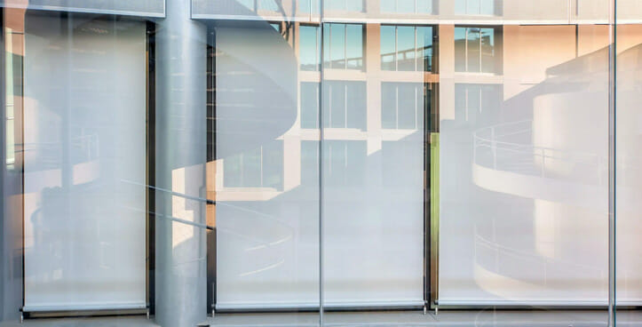 Pour la rue Porlezza 12, le bâtiment présente une structure caractérisée par une façade double-peau de verre. Une fois le besoin de blindage du vitrage constaté, Resstende a installé à l’extérieur mais à l’intérieur de la double-peau, le système RESS FLEX 01 combiné à SUNSCREEN SATINÉ 5500 en blanc perlé – code 30027, pour améliorer les performances énergétiques de la structure. Pour les protections à l’intérieur des bureaux des étages supérieurs, c’est le modèle du store roulant F110, avec commande motorisée et fixation au plafond associé au tissu M-SCREEN, de couleur blanc perlé – code 33207, qui s’intègre parfaitement au style moderne et sophistiqué des bureaux.