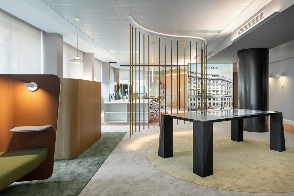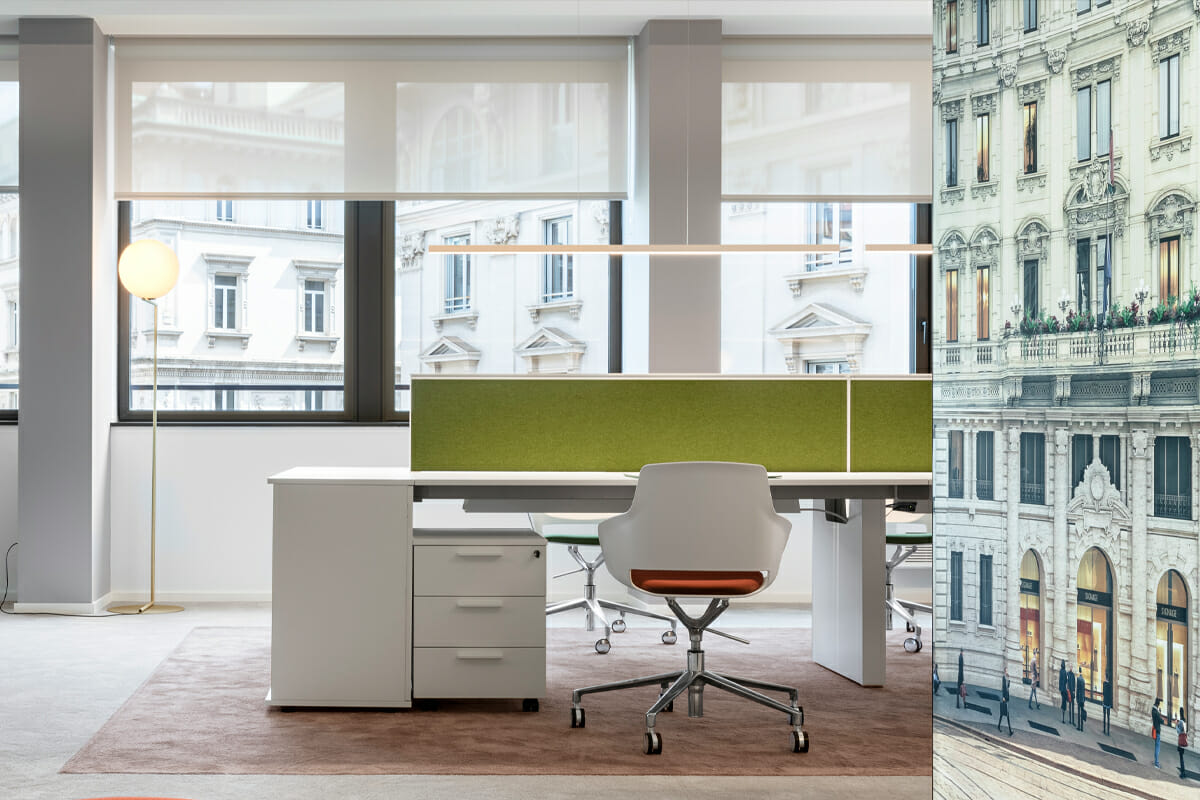 Les espaces de travail de demain sont présentés dans la première maquette de bureau conçue par MCD et réalisée pour le prestigieux complexe immobilier “The Medelan”, au cœur de Milan. Resstende fait partie des espaces avec ses SYSTÈMES ROULANTS F 112, des systèmes FONCTIONNELS, LINÉAIRES ET CAPABLES DE S’INTÉGRER AVEC HARMONIE ET ​​ÉLÉGANCE. Le choix du tissu technique est fondamental car il agit comme un véritable bouclier thermique, bloquant la chaleur et assurant ainsi un confort visuel optimal. Le projet repose sur des principes du design resimercial : TRANSFÉRER L’AMBIANCE ET LE CONFORT DES ENVIRONNEMENTS RÉSIDENTIELS AU BUREAU.