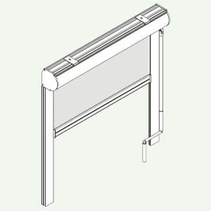 MANOEUVRE : à chaîne avec contrôle de friction EASY LOCK en PVC et calotte sur le côté opposé avec goupille rétractable pour faciliter le démontage du rouleau des équerres et ressort de rappel pour faciliter le levage de la toile. Chaîne pas 6 en nylon avec grains en PVC Ø 4,5 mm, équipée d’un déclencheur de sécurité “child safety device” conforme à la norme UNI EN13120:2014