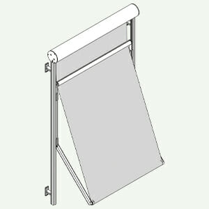 GUIDES : GP32 en aluminium extrudé pour fixation latérale ou frontale. Toile hors guide. Système de projection avec traverse horizontale en aluminium extrudé, coulissant dans le guide avec des patins autoréglables