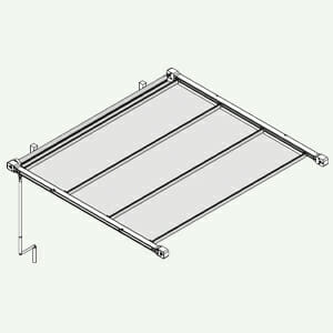 MANŒUVRE : à treuil, rapport tours 1:3,3 avec fin de course, monté sur une tête, relié par un arbre à un pignon dans l’autre tête pour la manipulation de courroies d’entraînement crantées (polyuréthane/câbles en acier à haute résistance) à l’intérieur de guides latéraux. Tige tubulaire Ø 13 mm en aluminium extrudé, amovible avec fixation magnétique, poignée articulée revêtue en PVC.
